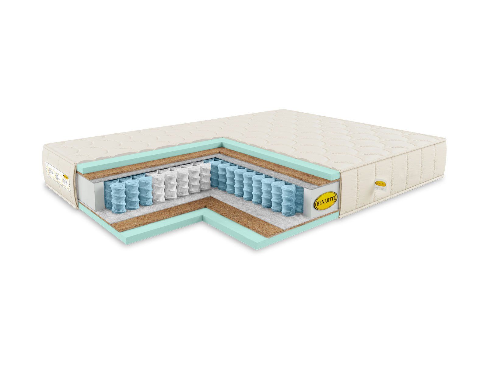 Внутри матраса устанавливаются пружины TFK и слои наполнителей в одинаковой комбинации с каждой из сторон. Пружины размещаются таким образом, что работают, не вовлекая в действие соседние элементы. Так обеспечивается ортопедическое функционирование модели.