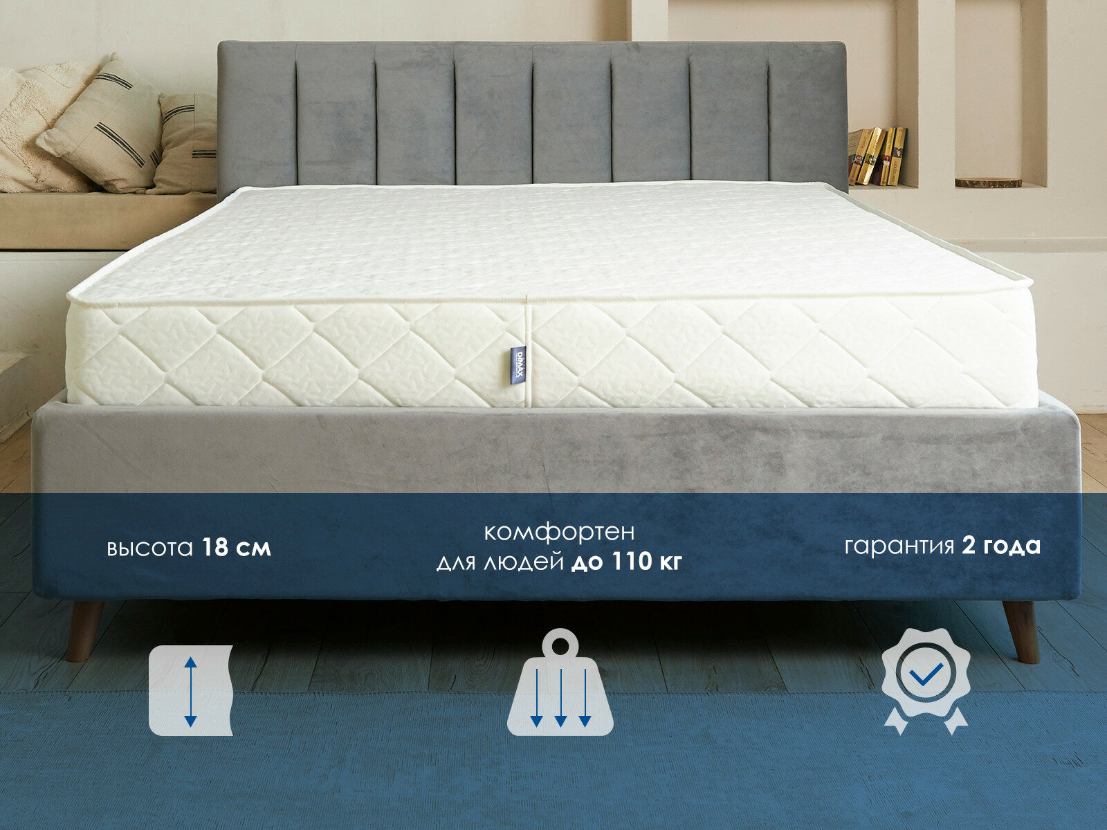 В меру мягкий матрас Димакс Relmas Foam 3Zone сочетает массажный эффект и анатомически корректную поддержку. Модель построена на независимом пружинном блоке с зональной системой распределения нагрузки.