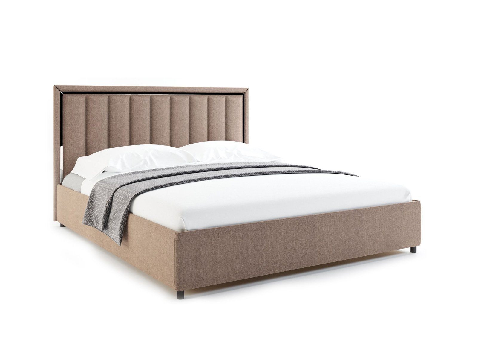 Кровать комплектуется металлическим основанием с подъемным механизмом и ящиком для белья.