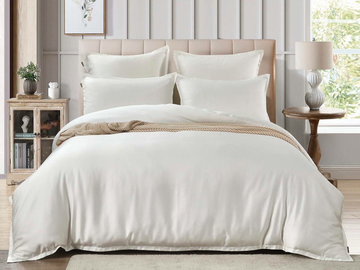 Комплекты постельного белья Ансель: нежность и комфорт каждую ночь Ищете постельное бельё, которое подарит вам незабываемый комфорт и уют? Тогда комплекты постельного белья Ансель из тенселя — идеальный выбор! Тенсель — это натуральная ткань, изготовленная из волокон эвкалипта. Она обладает рядом преимуществ перед хлопковыми тканями: более нежная, шелковистая и приятная на ощупь. Комплекты постельного белья Ансель включают в себя наволочки, простыню и пододеяльник. Они выполнены из 100% тенселя, что гарантирует высокое качество и долговечность. Одно из главных преимуществ тенселя — его способность пропускать воздух и хорошо впитывать и испарять влагу. Это обеспечивает оптимальный микроклимат во время сна, предотвращает появление неприятных запахов и бактерий. Ещё одно важное свойство тенселя — антибактериальный эффект. Это значит, что постельное бельё Ансель не вызывает аллергии и подходит для людей с чувствительной кожей. Уникальное свойство тенселя — климат-контроль. При высокой температуре в помещении ткань обладает лёгким и приятным охлаждающим эффектом, а при низкой создаёт ощущение тепла и комфорта. Комплекты постельного белья Ансель — это идеальный выбор для тех, кто ценит комфорт, качество и натуральность. Они станут отличным дополнением к вашему интерьеру и подарят вам незабываемые ощущения во время сна.