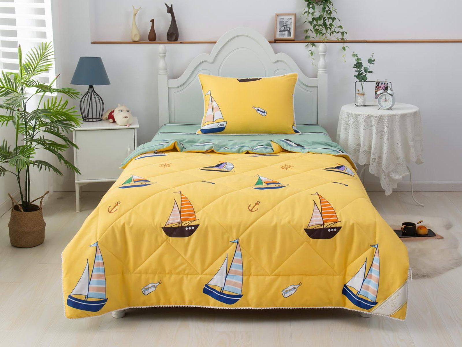 Интернет-магазин СОН.РУ предлагает купить постельное белье с доставкой по Астрахани . Комплект постельного белья Софи де Марко Кораблики (желтый) с одеялом 1,5-спальный размера 1,5-спальный стоит 15 120 ₽ . На товар действует скидка в размере %. Если у вас есть вопросы по гарантии, доставке и оплате, задавайте их менеджерам нашего кол-центра по телефону: 8 800 333-65-91 .