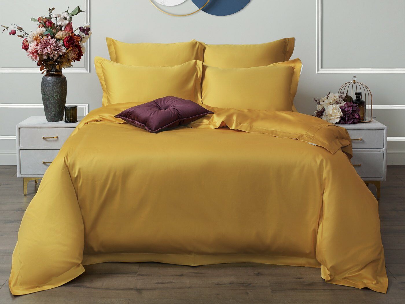 Натуральный состав из 100%-го хлопка обеспечивает гипоаллергенные свойства материала, он охлаждает в жаркую погоду и согревает в холодное время года. Мако-сатин плотностью 300ТС- является тканью класса люкс.