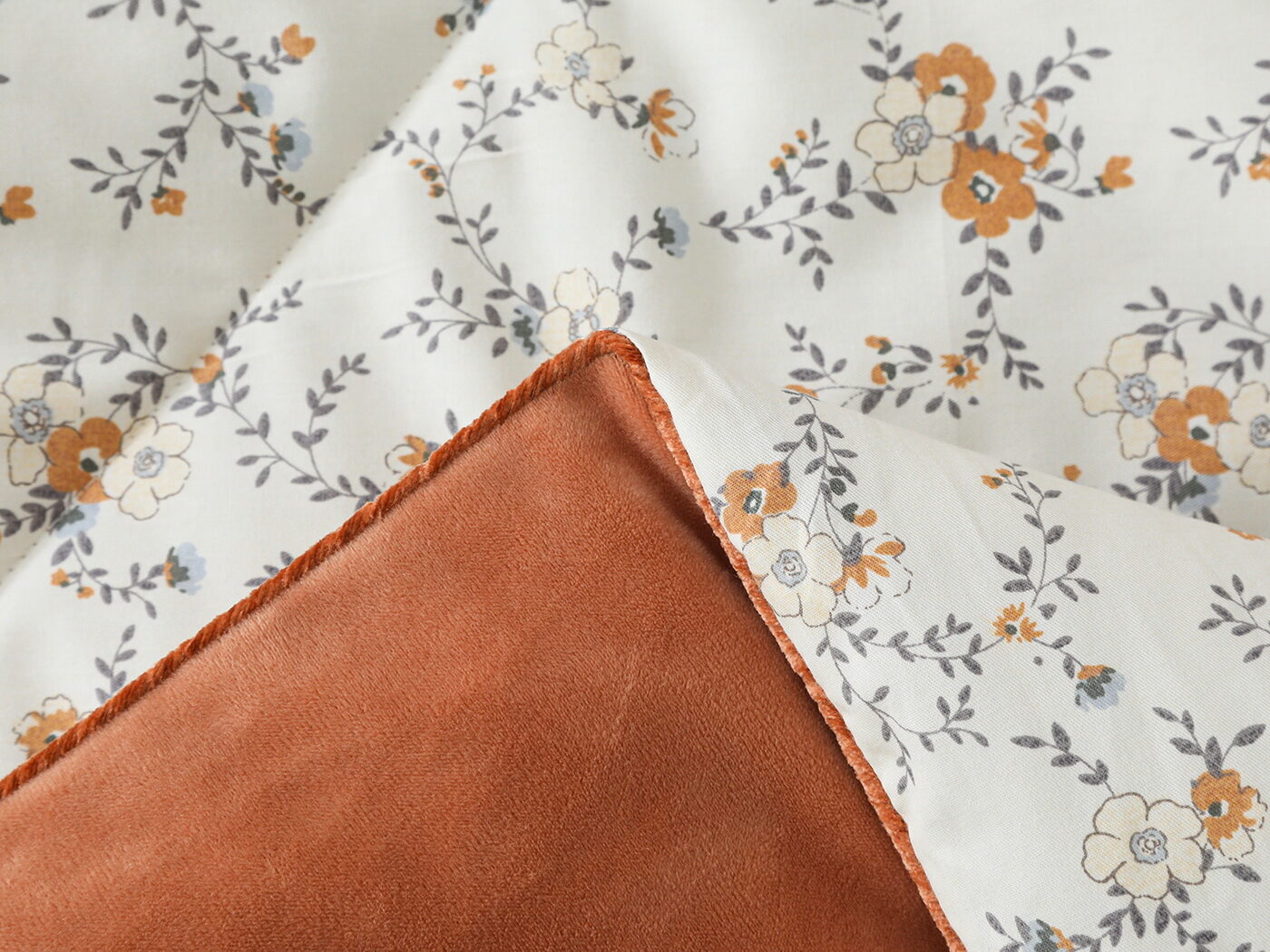 Обратная сторона одеяла – принтованный сатин натуральный хлопковый материал. На ощупь нежная и шелковистая, при этом комфортная и прочная ткань.