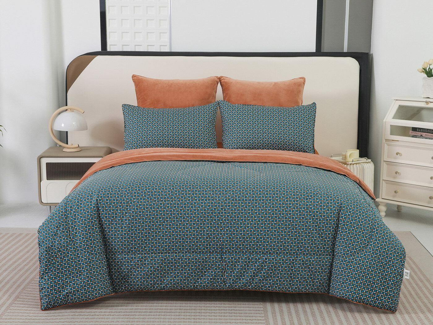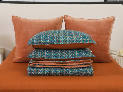 Новая коллекция комплектов «Роберто» с одеялом из однотонного велюра и принтованного сатина.
