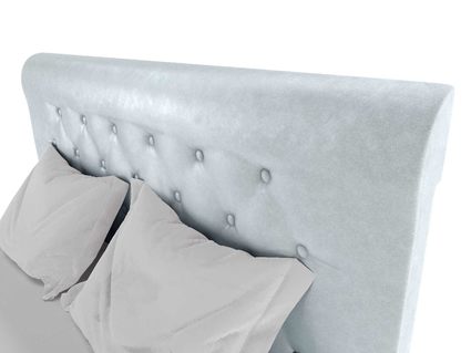 Для обивки кровати используется велюр – мягкий и бархатный материал, который дарит очень нежные соприкосновения. При стандартной комплектации обратная сторона изголовья выполняется из технического материала. Однако по желанию его можно заменить на основную обивку кровати.