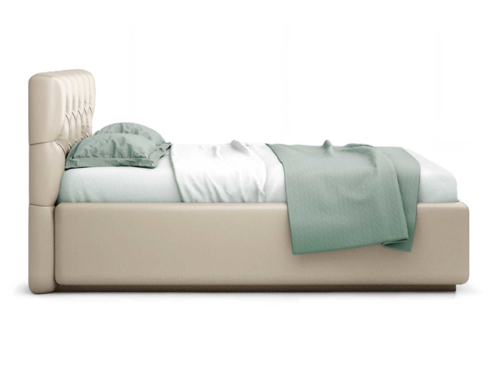 Кровать укомплектована IQ с подъемным механизмом и ящиком для белья без дна (дополнительная платная опция - дно к ящику IQ из HDF (ХДФ). Каркас кровати на цоколе, декоративный чехол на цоколе съёмный. Глубина ящика для белья - 30 см, без ограничения нагрузки на ящик.
