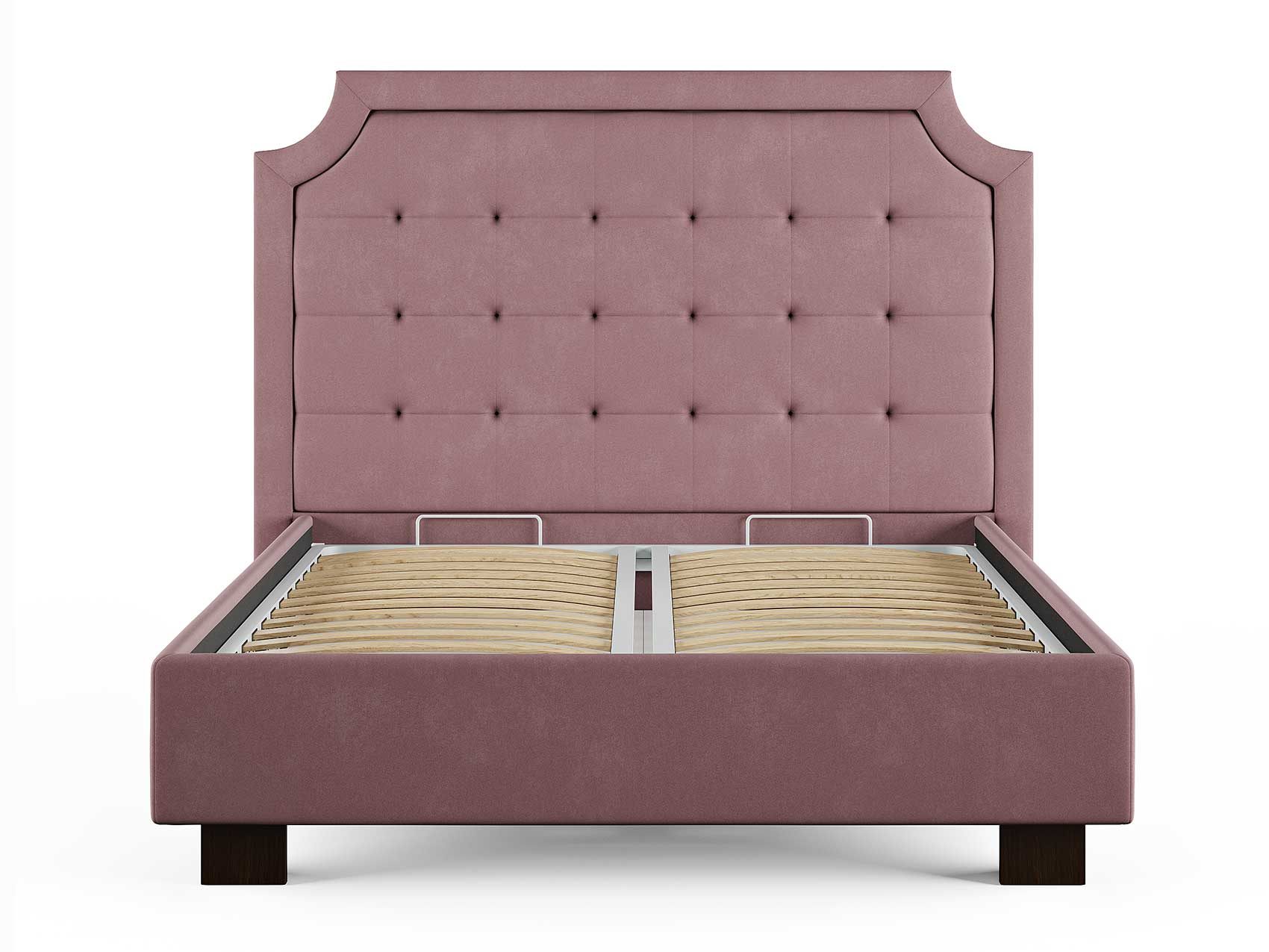 Кровать прекрасно впишется в интерьер от классики до современного стиля и cтанет отличным решением для просторной светлой спальни. Высокая спинка с мягкими утяжками и массивной рамкой выглядит эффектно. Задняя часть спинки кровати выполнена в основной ткани, благодаря этому ее можно установить в центре комнаты. Увеличенная прочность кровати достигается за счет металлического каркаса по периметру. Массивные ножки, выполнены из бука цвета венге. Расстояние от пола до царг способствует легкой уборке под кроватью, в том числе роботом – пылесосом.