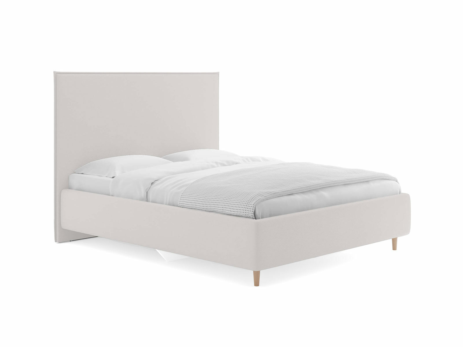 Кровать Eveline для современных интерьеров в скандинавском стиле. Выглядит эффектно благодаря мягкому высокому изголовью с декоративным кантом по периметру и опорам из натурального дерева. Модель будет смотреться выигрышно и актуально в интерьере, делая спальню уютнее, настраивая на отдых.