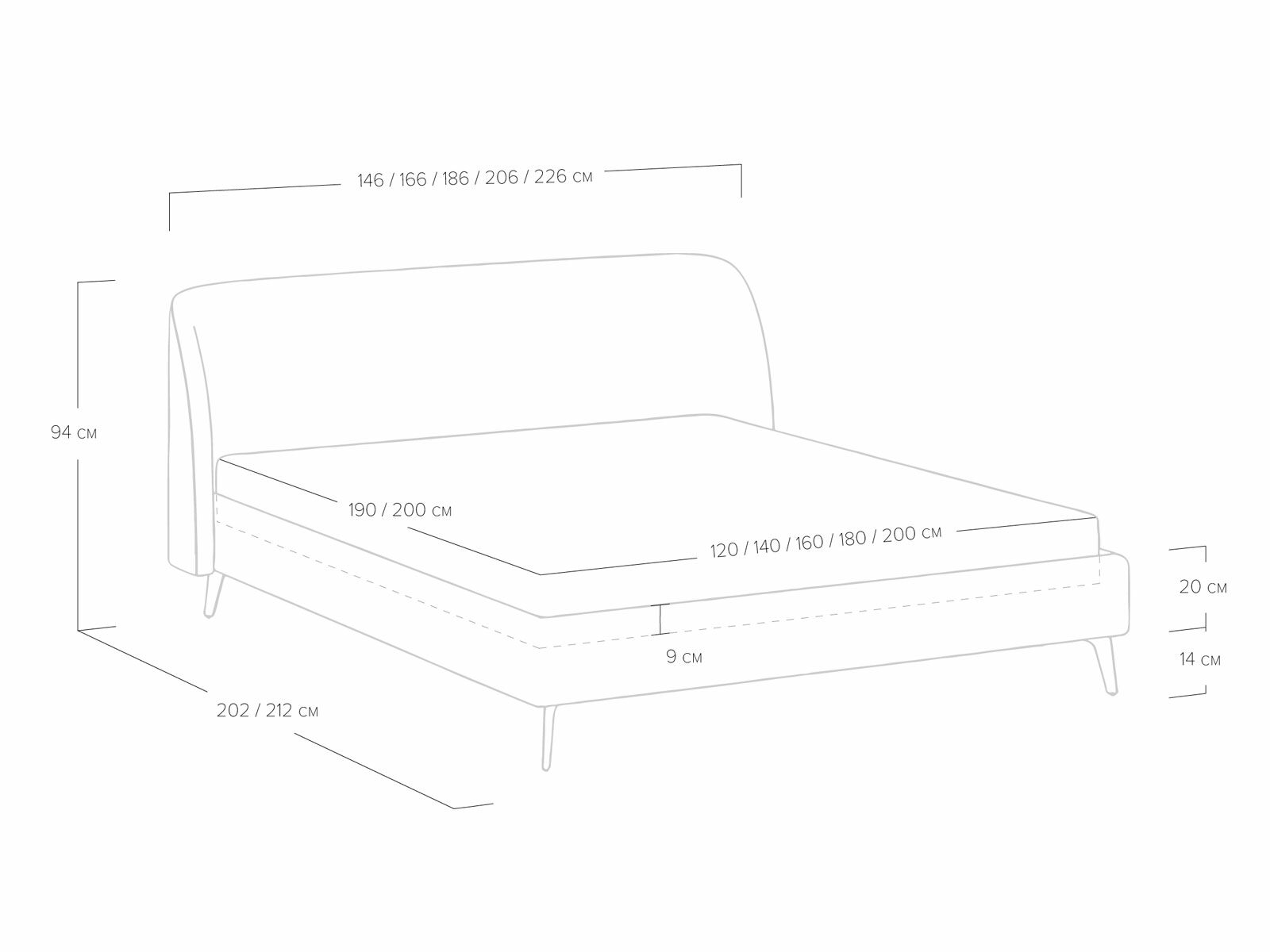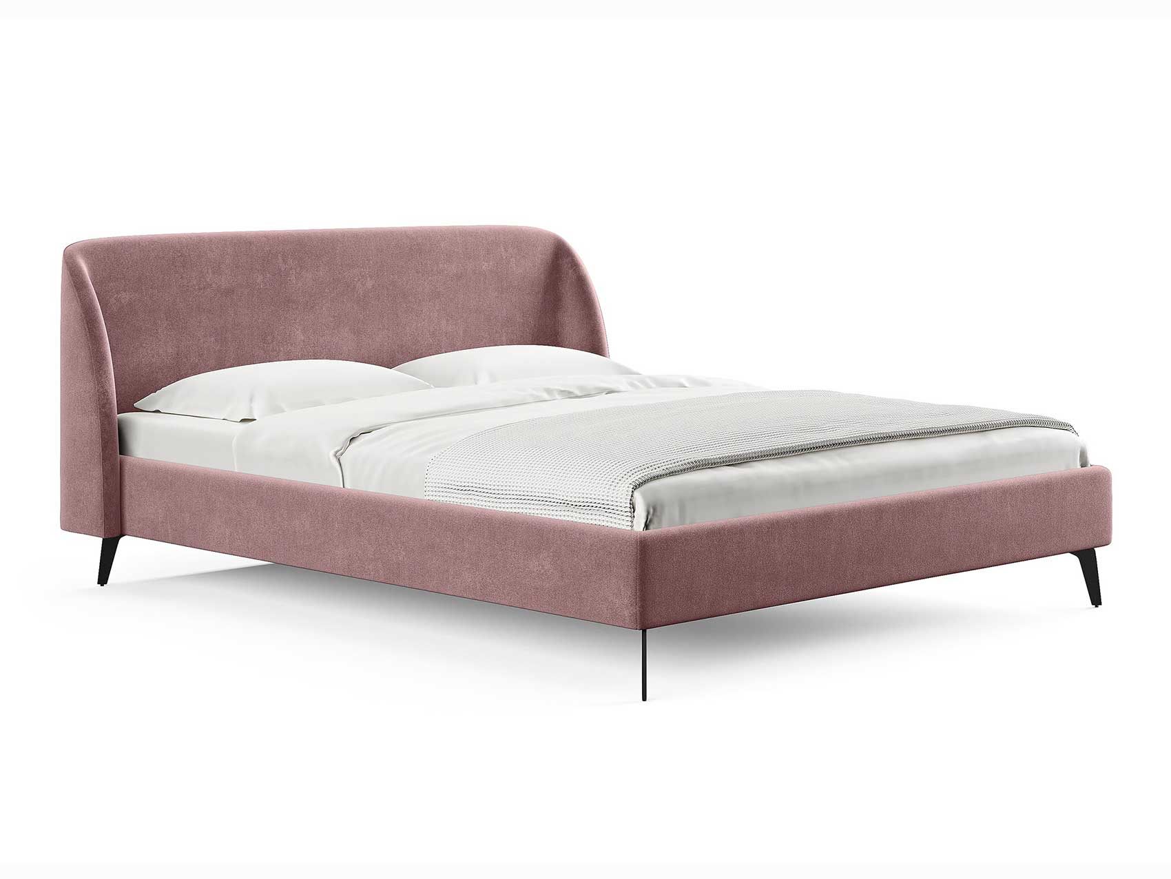 Кровать с закругленным изголовьем делает спальное место особенно уютным. Ее дизайн удачно подойдет для интерьеров в современном стиле, стиле минимализм и стиле mid-century модерн. Спинка кровати выполнена в основной ткани, благодаря этому ее можно установить в центре комнаты. Узкие царги и стильные металлические ножки делают кровать легкой и лаконичной. Кант на изголовье выступает в качестве декора, подчеркивает ее выразительность. Увеличенная прочность кровати достигается за счет металлического каркаса по периметру. Расстояние от пола до царг способствует легкой уборке под кроватью, в том числе роботом – пылесосом.