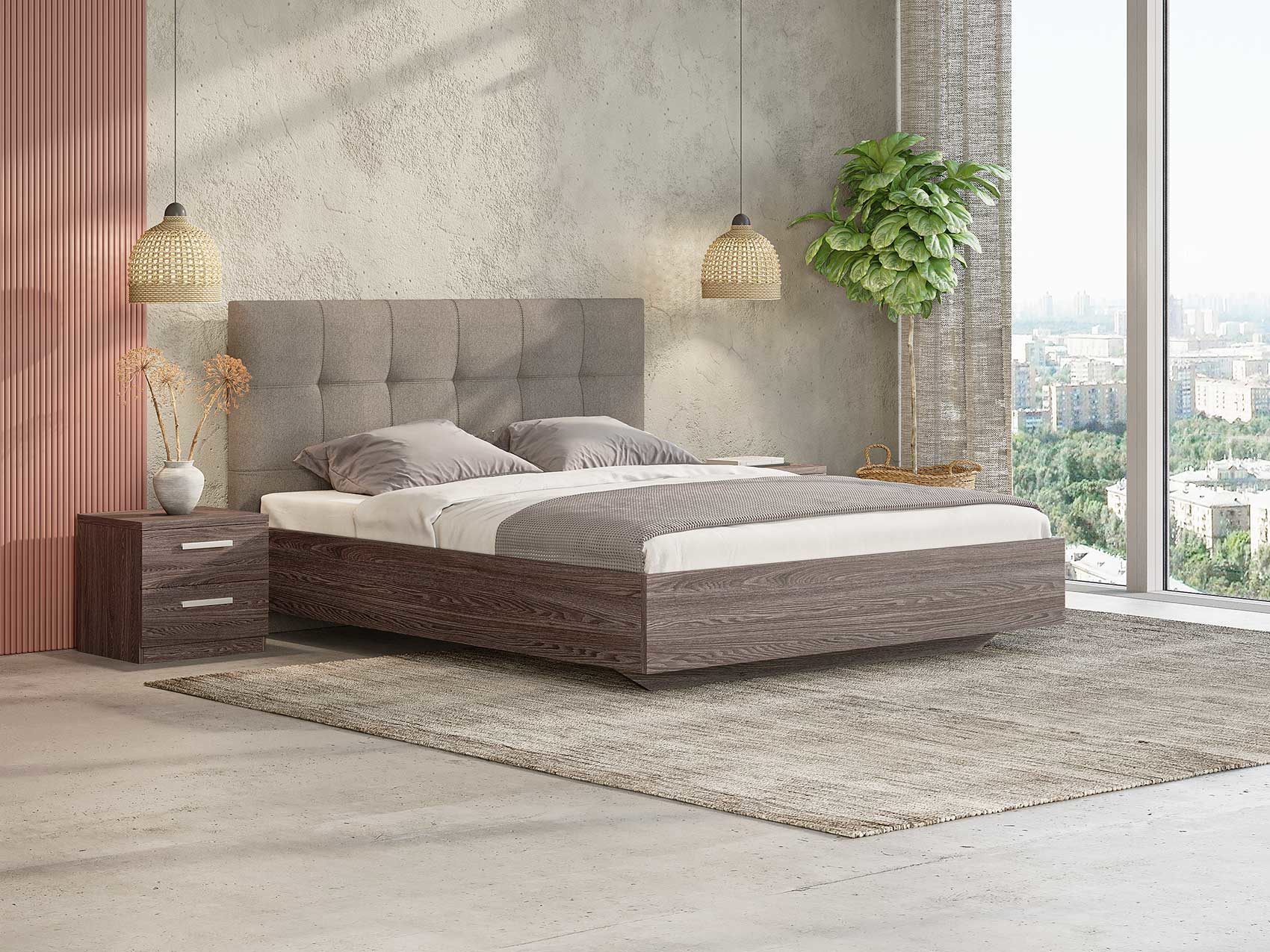 ЛДСП. Безопасный и экологичный ЛДСП стандарта Е1 содержания формальдегида. Увеличенная толщина плиты 25 мм делает кровать надежной. Современный и актуальный цвет.