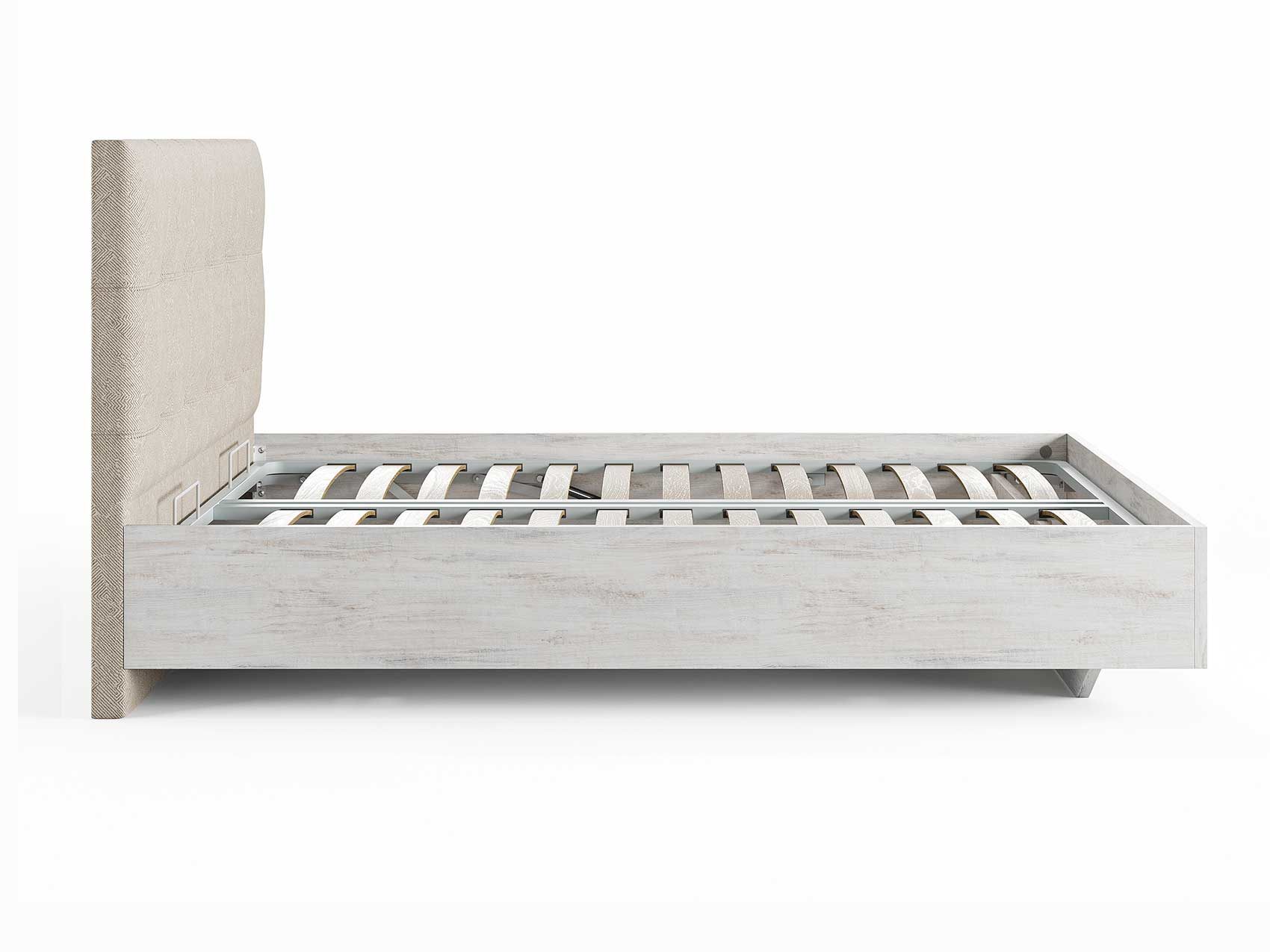 Кровать комплектуется металлическим основанием и подъемным механизмом со вместительным бельевым ящиком. Дно бельевого ящика легко сдвигается для обеспечения уборки под кроватью.