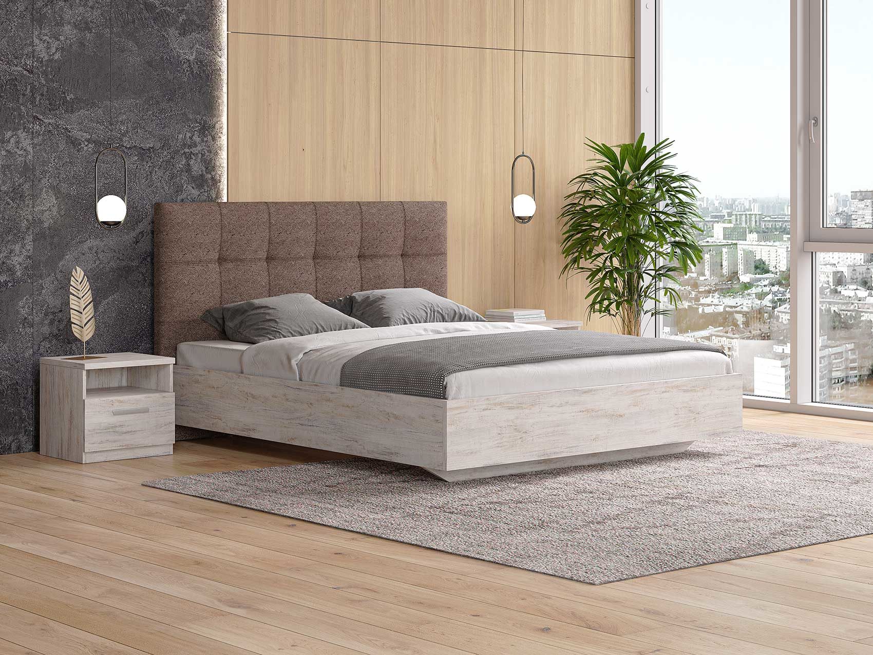 ЛДСП. Безопасный и экологичный ЛДСП стандарта Е1 содержания формальдегида. Увеличенная толщина плиты 25 мм делает кровать надежной. Современный и актуальный цвет.