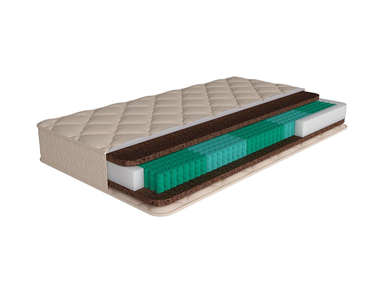 Для наполнения матраса реализована жёсткая и упругая койра кокоса. Это натуральный материал, который хорошо выдерживает большие нагрузки и формирует правильную поддержку спины.
