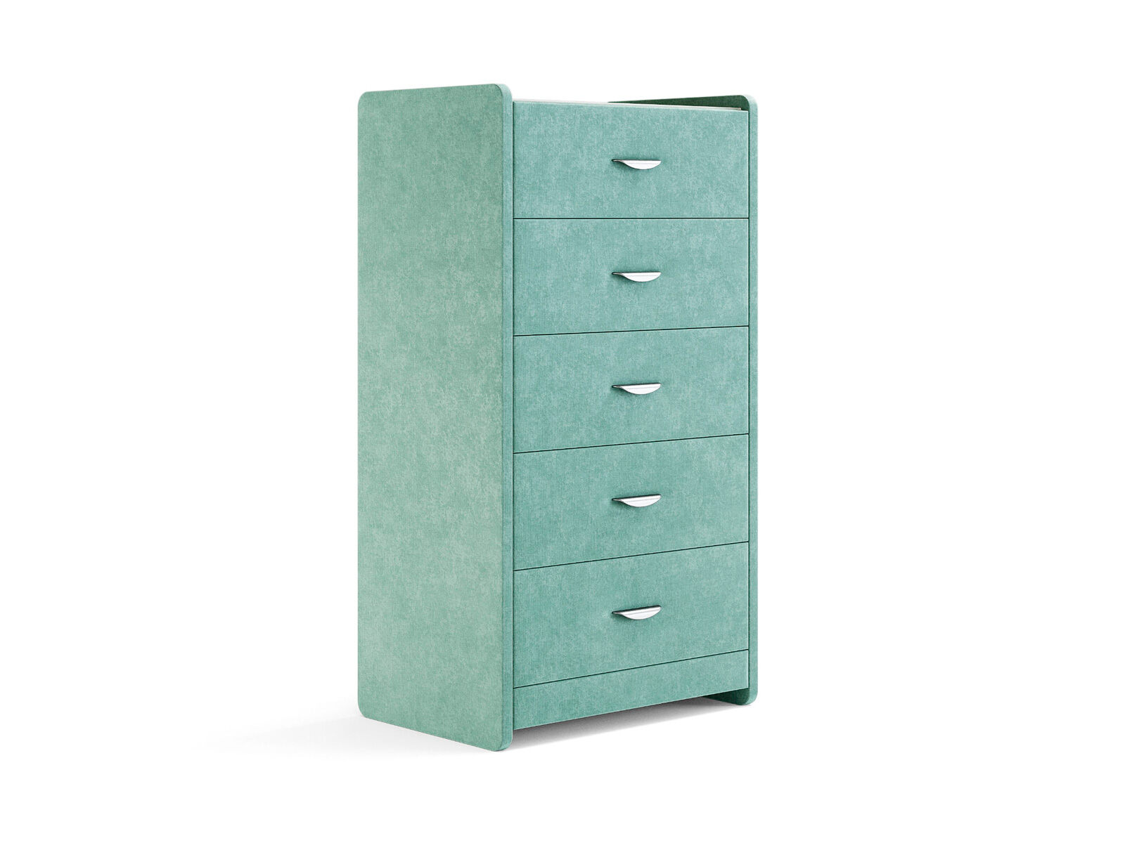 Комод с 5 ящиками сдержанного дизайна дополнит любой интерьер и сделает его более функциональным. Каркас комода и фасад ящиков покрыты обивочным материалом и выполняется в 43 вариантах цветового исполнения. Для удобства использования и продления срока эксплуатации, рекомендуется использовать стеклянную накладку. Накладка используется в качестве столешницы для тумбы и защищает ее от повреждений и загрязнений. Стеклянная столешница заказывается дополнительно.