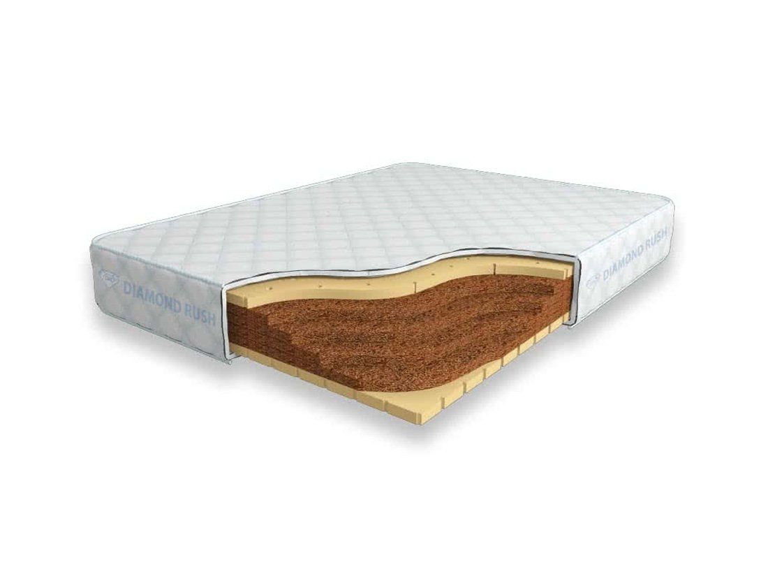 Матрас Diamond Rush Cocos Lite 18 DR является беспружинным. В основе модели идут кокосовые плиты, сверху и снизу для большего комфорта и придания средней жесткости прокладываются листы по 3см натурального перфорированного латекса.