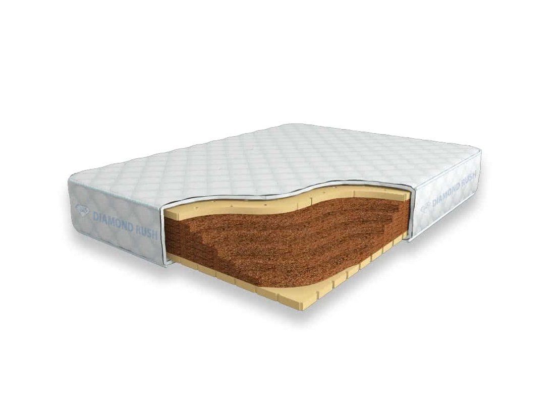 Матрас Diamond Rush Cocos Lite 21 DR является беспружинным. В основе модели идут кокосовые плиты, сверху и снизу для большего комфорта и придания средней жесткости прокладываются листы по 3см натурального перфорированного латекса.