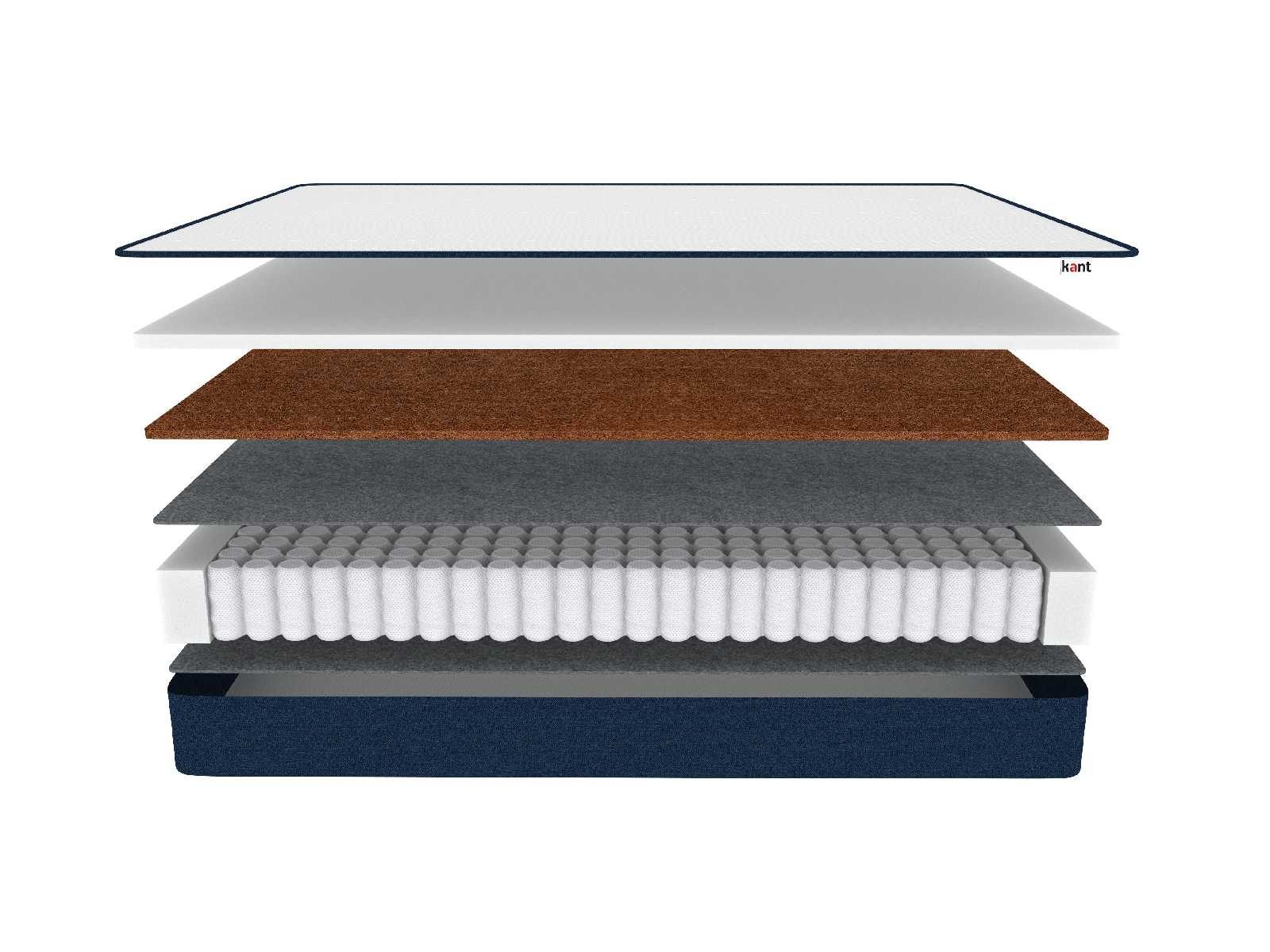 Слой упругой пены Kant foam устанавливается поверх койры для того, чтобы снизить жёсткость и придать стороне ещё больший комфорт. Пена гипоаллергенна, прочна и отлично проветривается за счёт пористой структуры.
