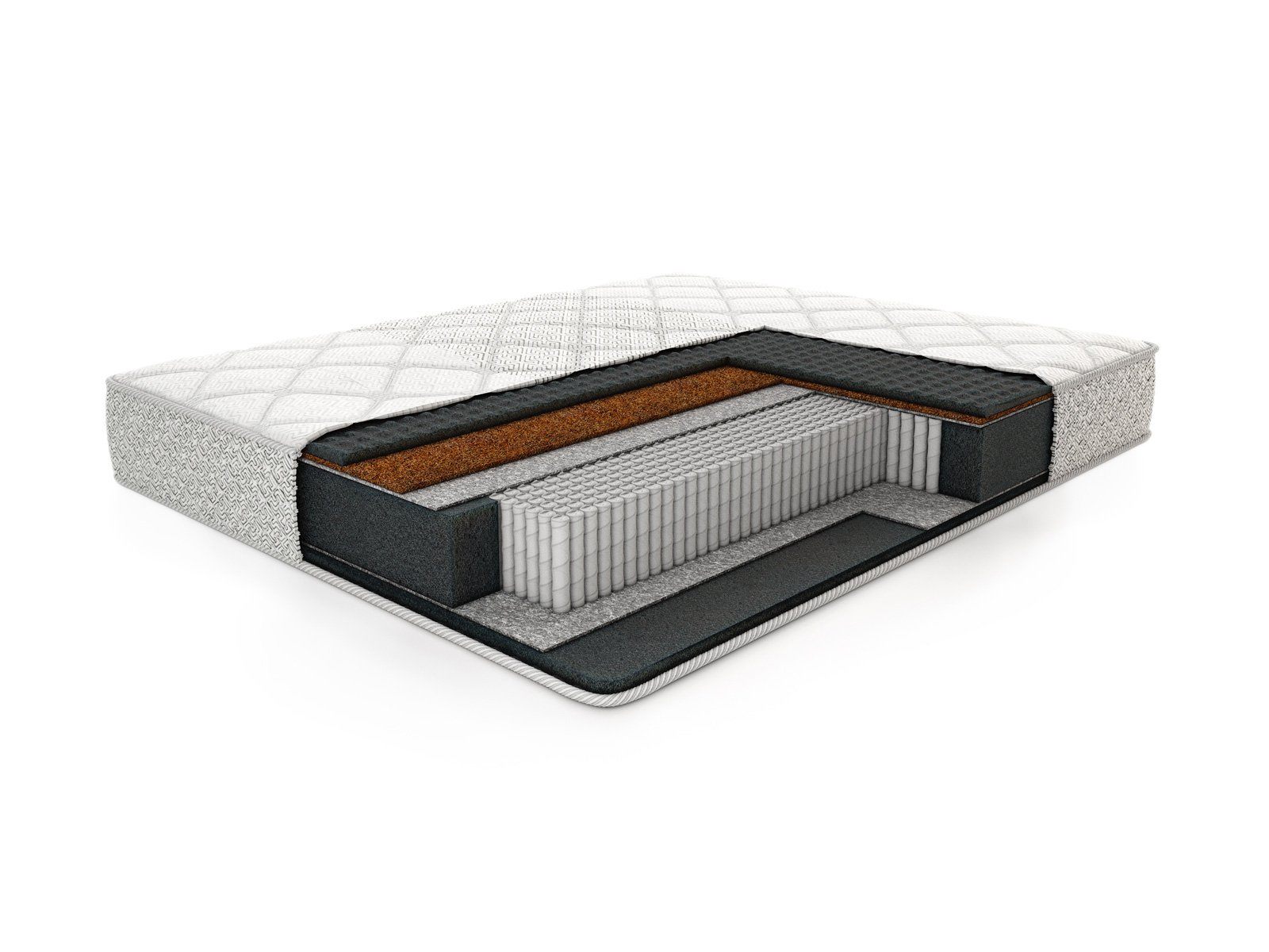 Одна из поверхностей получила кокосовый слой. Натуральный жёсткий наполнитель усиливает поддерживающие свойства, а также добавляет твёрдости стороне.