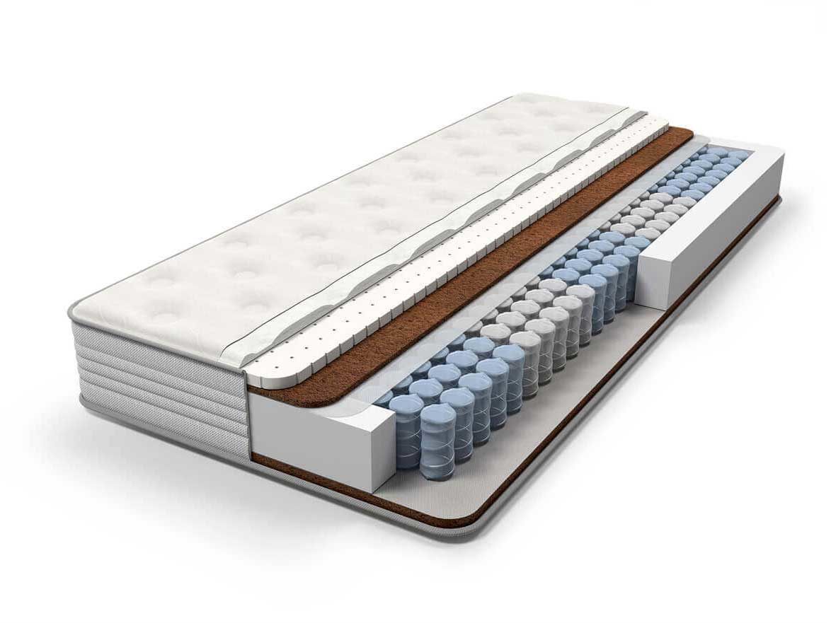 Матрас Sleep изготовлен на базе блока независимых пружин Pocket Zone, имеющий 5 зон различной степени упругости плотностью 500 пружин на спальное место. Благодаря использованию проволоки различного диаметра каждая из зон получает опору соответствующей для нее жесткости, обеспечивая правильное распределение нагрузки. Матрас Sleep (слип) с разной жесткостью сторон производится исключительно из натуральных наполнителей. С одной стороны кокосовая койра в комбинации с натуральным латексом обеспечивают среднюю жесткость, а кокосовая койра с другой стороны обеспечивает максимальный полезный эффект благодаря повышенной жесткости.