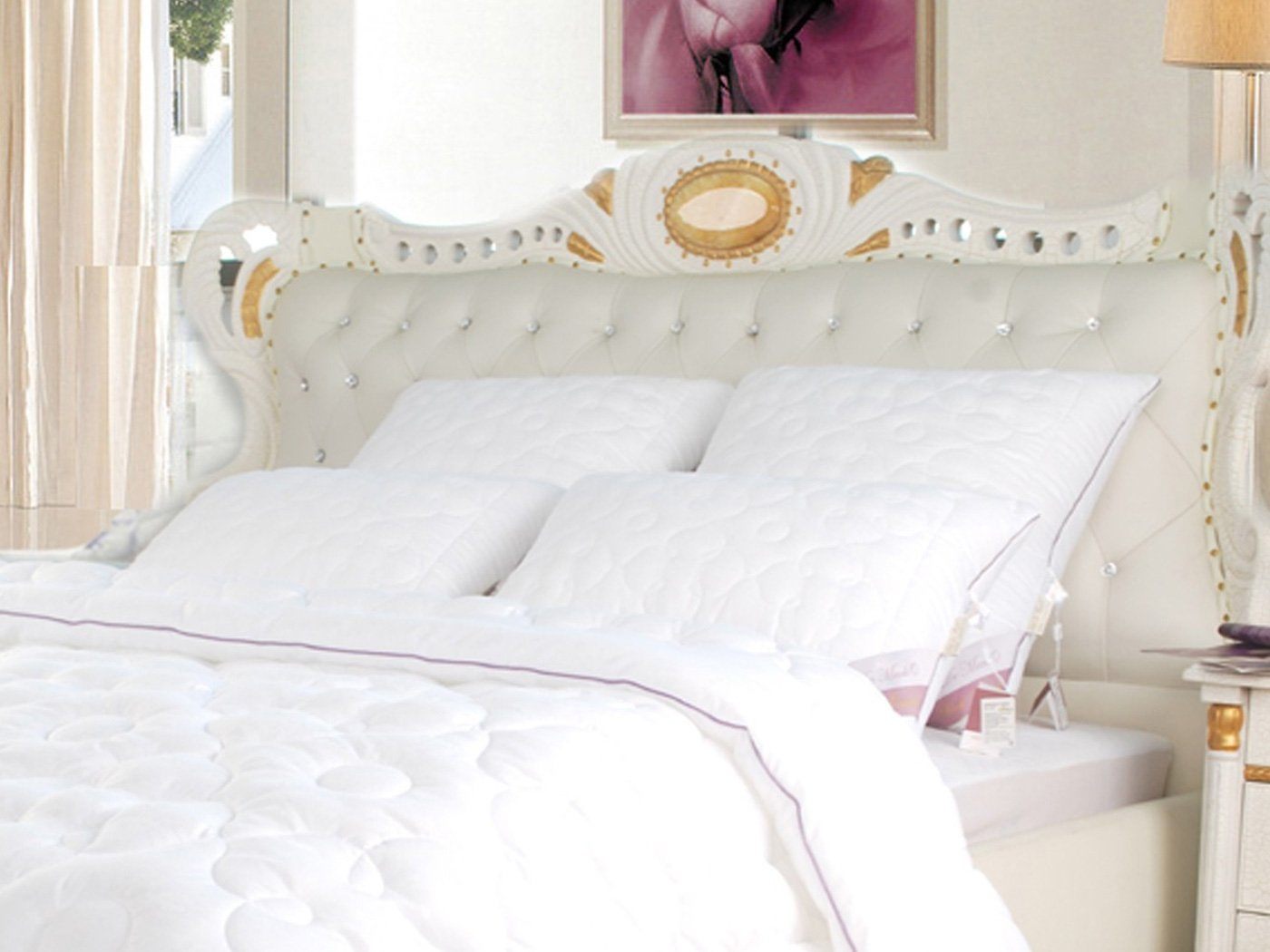 Сочетание хлопка и микроволокна в наполнителе хорошо сохраняет форму, обладают высокой прочность и износоустойчивостью. Такие изделия легкие, способны поддерживать оптимальную температуру во время сна. Экстракт розы, добавленный в состав, обладает расслабляющим действием, снимает усталость и способствует быстрому восстановлению сил.