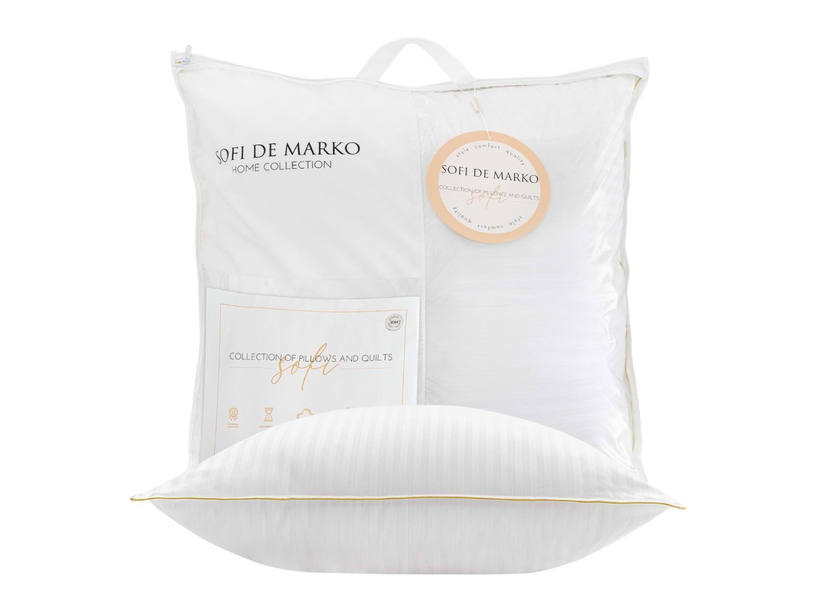 Подушки и одеяла SOFI изготовлены из ткани страйп-сатин. Эта ткань придает изделиям дополнительную гладкость и изящность из-за шелковистого блеска.