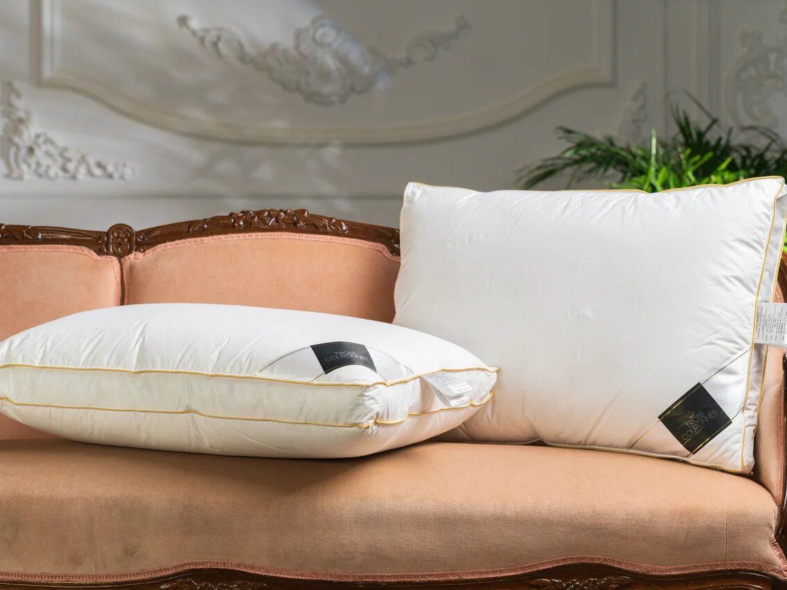 Ортопедическая трехкамерная подушка c бортиком Luxury Selection 3-chamber Goose Down SOFT белого цвета c золотым кантом.