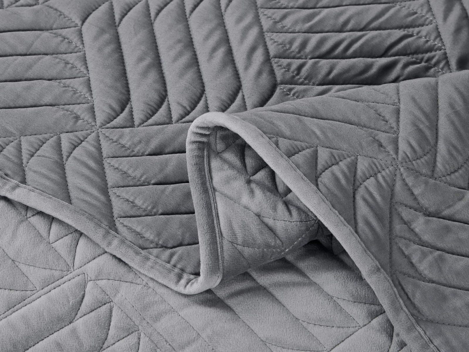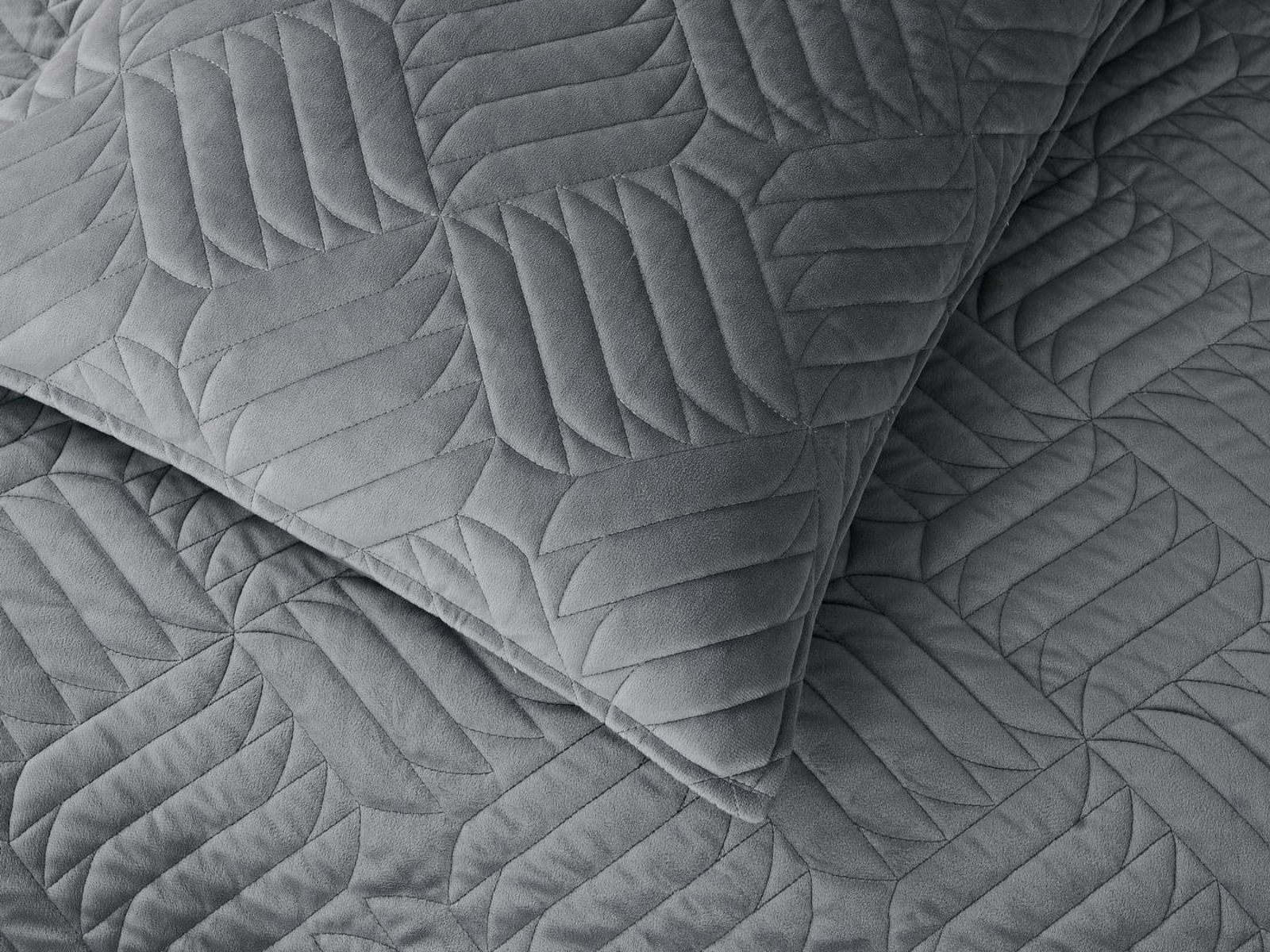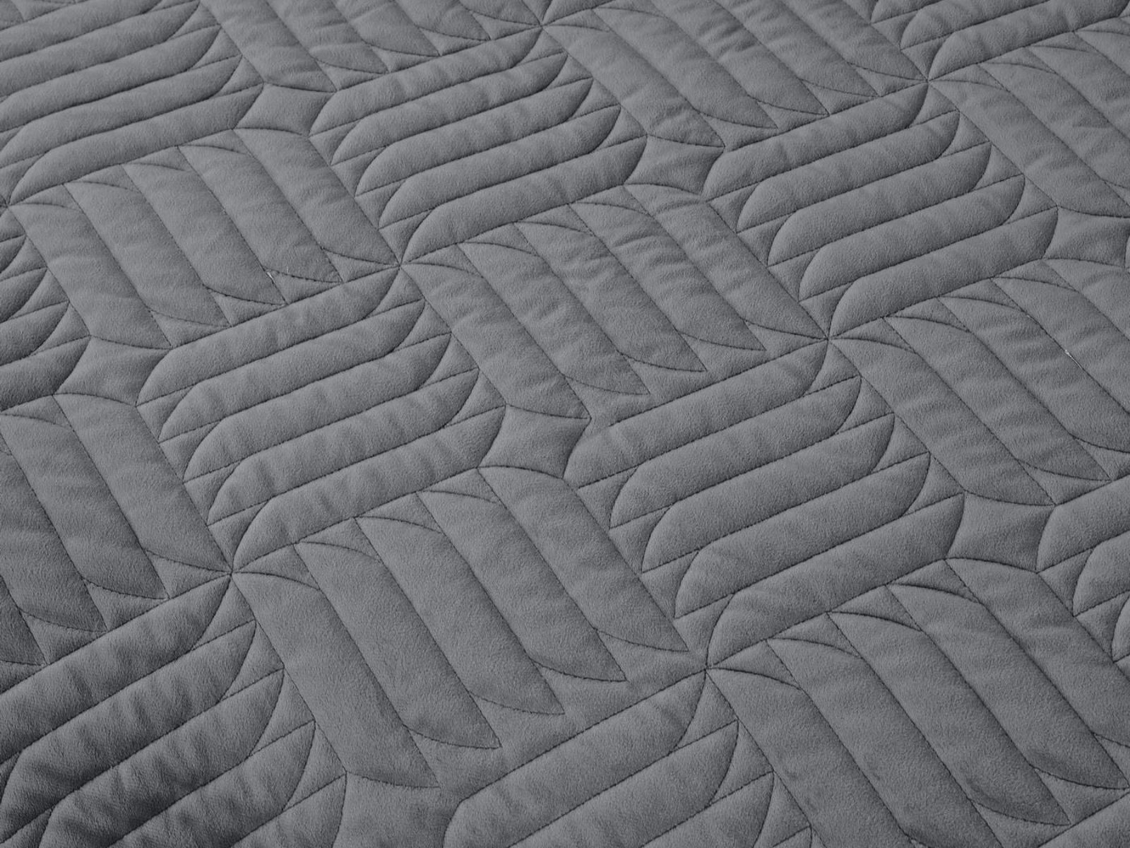 Покрывала выполнены в 10 оттенках: крем, мокко, пепельный, песочный, светло-бежевый, светло-серый, серый, темно-серый, чайная роза и черный. Стежка в виде геометрического орнамента подойдет к любому современному интерьеру. Из-за особого плетения, велюровая ткань покрывала отражает свет и красиво переливается при различном освещении.