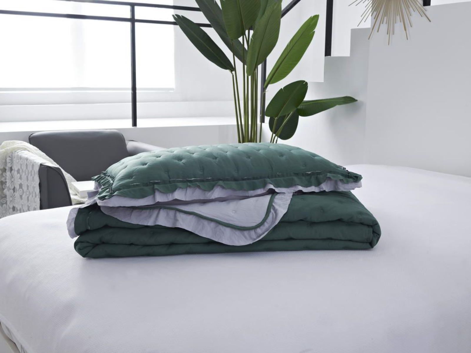 В комплект входят покрывало и одна либо две наволочки (50х70 см) из аналогичного материала в зависимости от размера.
