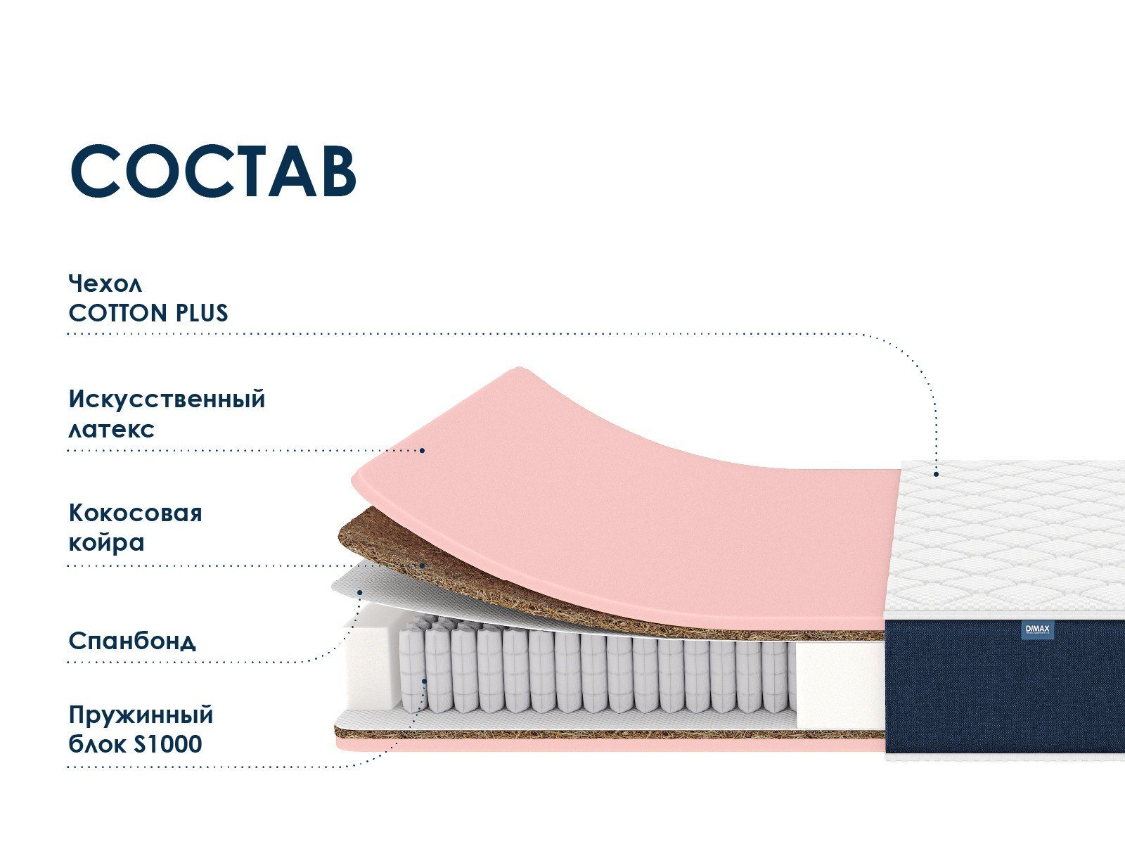 Димакс Практик Медиум Лайт 1000 — ортопедический пружинный матрас универсальной средней жёсткости. Благодаря комбинации плотной пены и кокосовой койры с обеих сторон, эта модель идеально подойдёт для комфортного сна и поддержки позвоночника.