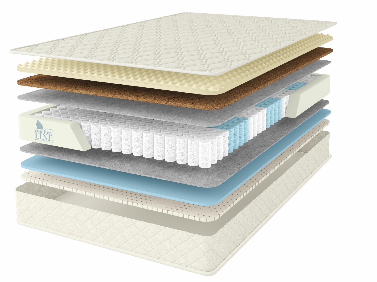 Кокосовое волокно с натуральным латексом придает жесткость, экологически чистый материал, который прекрасно вентилируется.