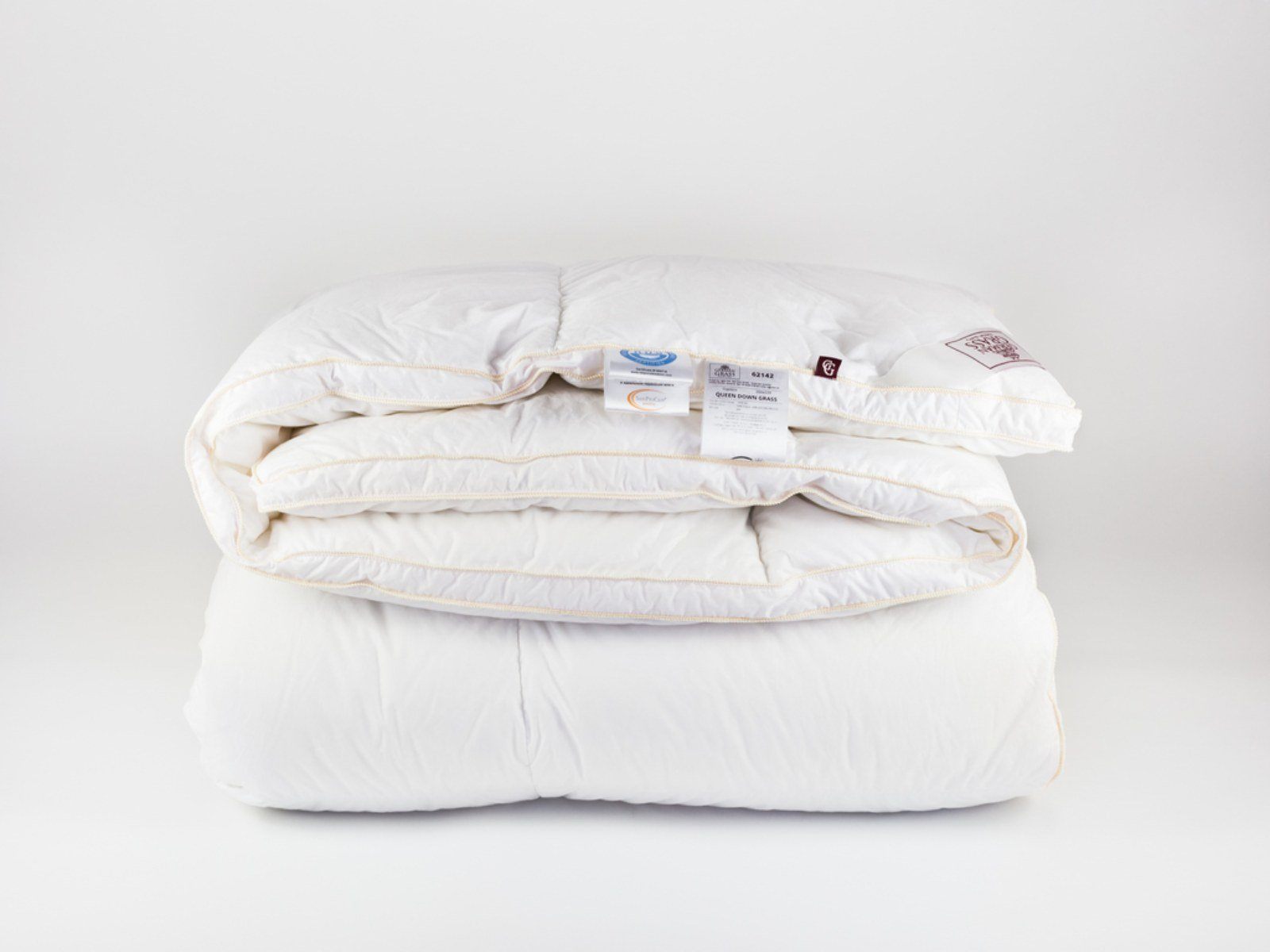 Кассетные одеяла ручной работы сконструированы так, чтобы пух равномерно распределялся внутри изделия, добавляя изделию невесомости. Каждая кассета 40х40 см наполнена отборным белым пухом вручную, а высота перегородки 3 см позволяет наполнителю свободно располагаться внутри, увеличить циркулюцию воздуха и повысить согревающие свойства.