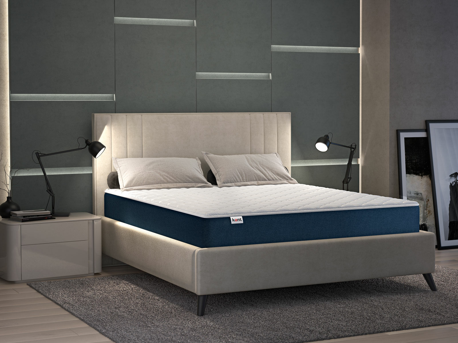 Слоем комфорта выступает ортопедическая пена Kant Extra Foam. Этот наполнитель в меру мягок, упруг и эластичен, поэтому прекрасно считывает контуры фигуры и подстраивается под них. Благодаря таким свойствам мышцы быстро расслабляются и человек комфортно и спокойно засыпает.
