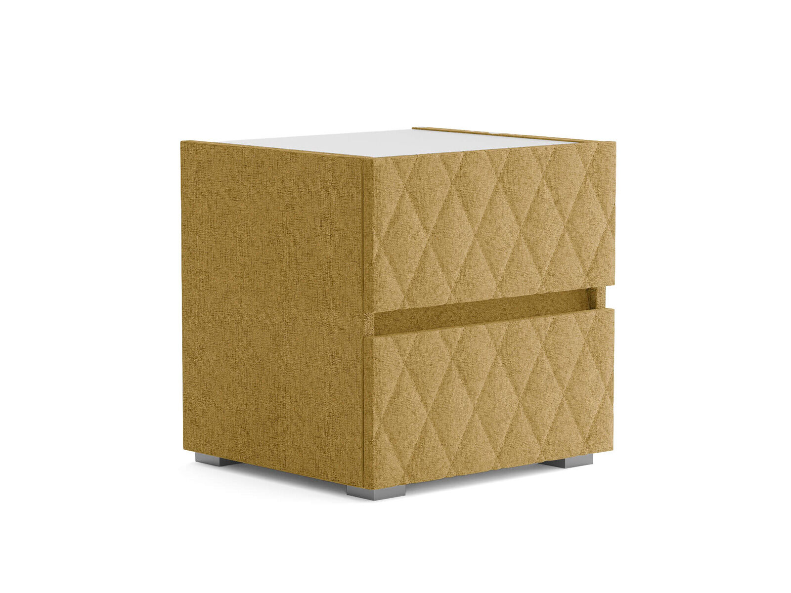 Тумба с мягкими фасадами, украшенными изысканной стежкой в виде ромбов, представляет собой идеальное сочетание утонченного дизайна и функциональности. Два выдвижных ящика с направляющими скрытого монтажа оснащены доводчиками. Тумбу дополнительно можно укомплектовать стеклянной столешницей. Широкий выбор фактур и цветов исполнения.