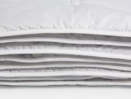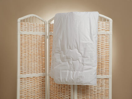 Рекомендации по уходу: стирать каждое изделие отдельно при температуре 40⁰ в режиме «деликатная стирка», с использованием специальных средств для шерсти или деликатных тканей, отжим на высоких оборотах барабана, сушить в расправленном виде, не выкручивать при отжиме. Каждая новая стирка сокращает срок службы изделия. Не использовать отбеливающие средства. Регулярно встряхивать и взбивать изделия после проведенной на них ночи. Хранить не герметично запакованными с притоком свежего воздуха. Воздержаться от использования постельного белья из синтетических и смесовых тканей.